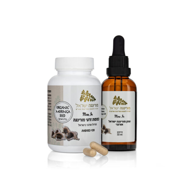 גלו את הדרך הטבעית להזין, לטפח ולחזק את הגוף עם מוצרי המורינגה הטהורים שלנו – השמן והכמוסות שפועלים יחד בהרמוניה מושלמת לבריאות מיטבית.
